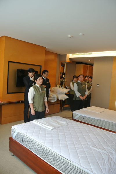 2014年7月17日14:00,由華盛江泉城酒店承辦的華盛江泉集團(tuán)第四屆“勞動(dòng)之星”職業(yè)技能競(jìng)賽中式做房項(xiàng)目的實(shí)操比賽在酒店主樓803房間進(jìn)行。參加本次比賽的選手共有43人,經(jīng)理論考核,成績(jī)領(lǐng)先的20名員工進(jìn)入了實(shí)操?zèng)Q賽。