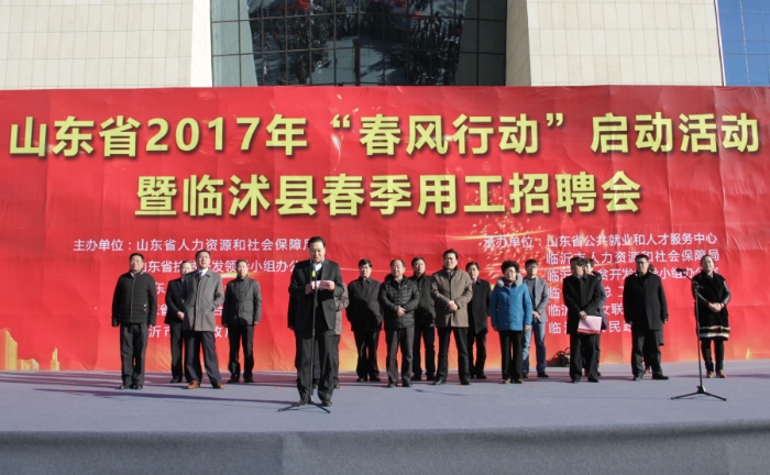 2017年1月20日,華盛江泉集團人力資源部相關負責人參加了由省人社廳、省扶貧辦、省總工會、省婦聯和臨沂市人民政府聯合舉辦的山東省2017年“春風行動”啟動活動暨臨沂市臨沭縣春季用工招聘會。出席啟動儀式的領導有省人社廳黨組副書記、副廳長夏魯青,省總工會副主席趙立群,省婦聯副巡視員盛巧俐,省公共就業和人才服務中心黨委書記、主任趙振國,省扶貧辦行業社會組副組長王又磊,省人社廳相關處室的領導,市委常委、副市長尹長友,市人社局黨組書記、局長邢軍,市總工會副主席張濤,市婦聯副主席孫靜,市人社局黨組成員、市人力資源開發服務管理辦公室主任王君川,市人社局黨組成員、副局長彭向榮等。省內300多家企業參加了此次活動。